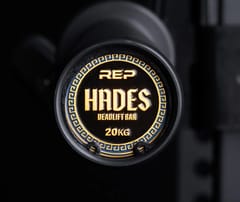 The Hades™ deadlift bar is REP’s top-tier deadlifting-specific barbell. This 20kg (44.1lb) bar features no center knurling and very aggressive, deep, mountain-style knurling to provide maximum grip support for heavy deadlifts. The thinner diameter shaft (27mm vs. 29mm for a standard powerlifting barbell) and longer total length (7.6’ vs. 7.3’) allows for more flex under heavy loads. The added flex in the shaft allows the lifter to pull from a slightly higher position as the weight leaves the ground, which is more optimal, and can contribute to heavier lifts.