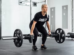 Add variety to your training with the REP Open Trap Bar. It’s designed to place the weight directly in line with your center of gravity instead of in front like a traditional barbell. Its neutral handle placement makes deadlifting much less technique intensive, while its open design allows for a versatile range of movements like squats, lunges, and presses. The bar features an integrated deadlift jack that makes loading and unloading the bar easier, featuring plastic liners on the feet to protect your floors. The jack also acts as a counterweight to keep the bar beautifully balanced. Weighing in at 58.4lbs (not including the handles), the bar features a round tube frame which makes it comfortable to use as a cambered bar for both pressing and squatting. The frame features a 6” section of medium-light knurling to add grip when squatting.